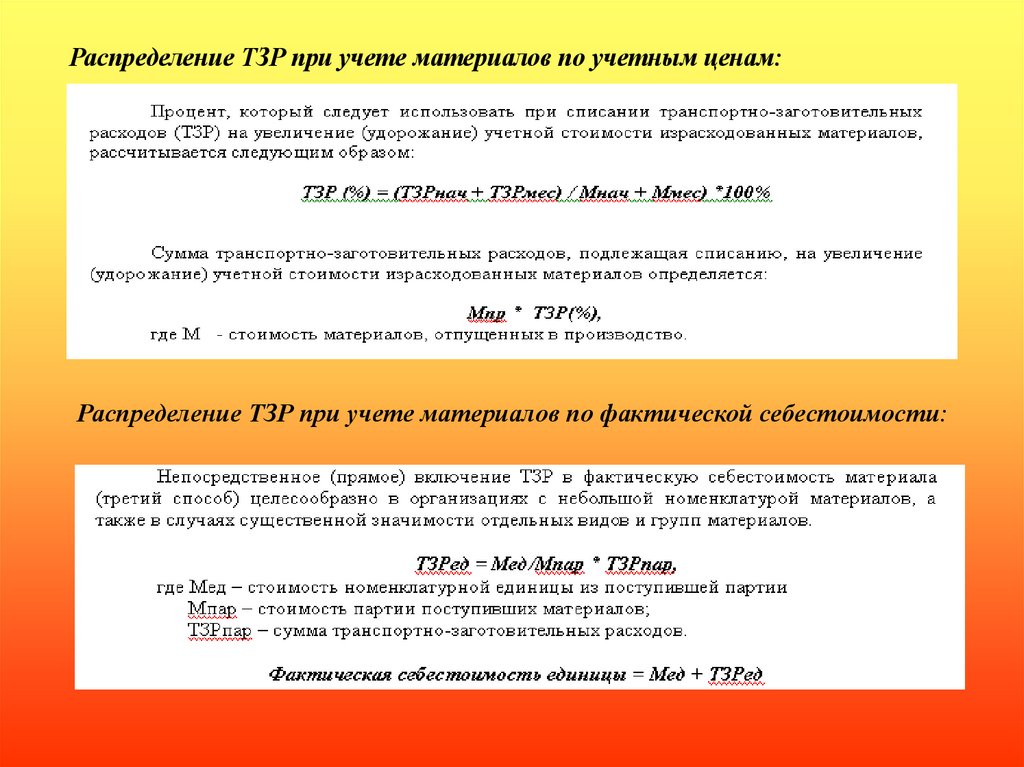 Распределение ТЗР при учете материалов по учетным ценам:Распределение ТЗР при учете материалов по фактической себестоимости: