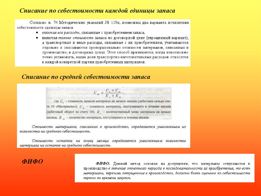 Списание по себестоимости каждой единицы запасаСписание по средней себестоимости запаса