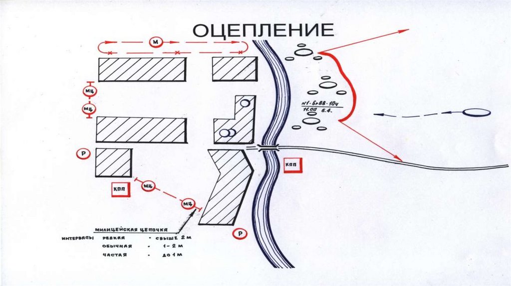 Войсковые цепочки могут быть: усиленные - с интервалом более 2м; однорядные имногорядные. Численность ВЦ может быть от отделения до роты, в ее состав могут