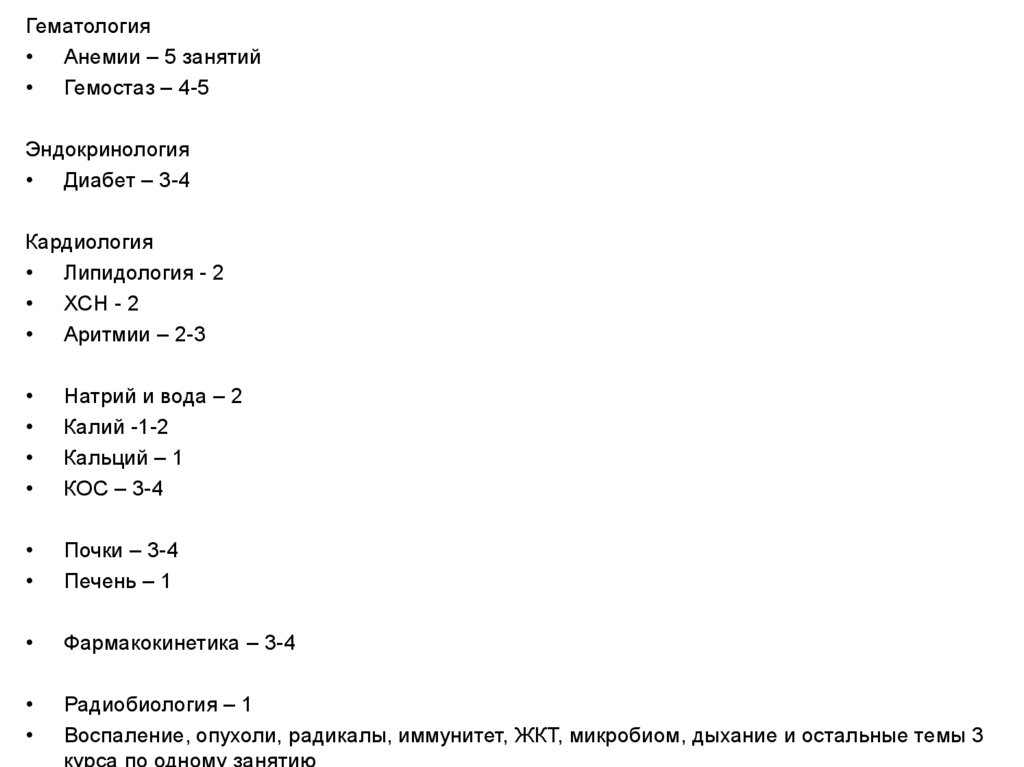 Гематология. Эндокринология. Кардиология. Фармакокинетика. Радиобиология
