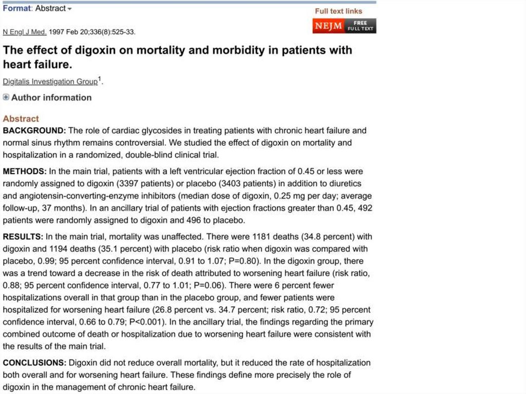 20. To resolve the 200-year-old controversy, the Digitalis Investigation Group launched the largest randomized, placebo-controlled