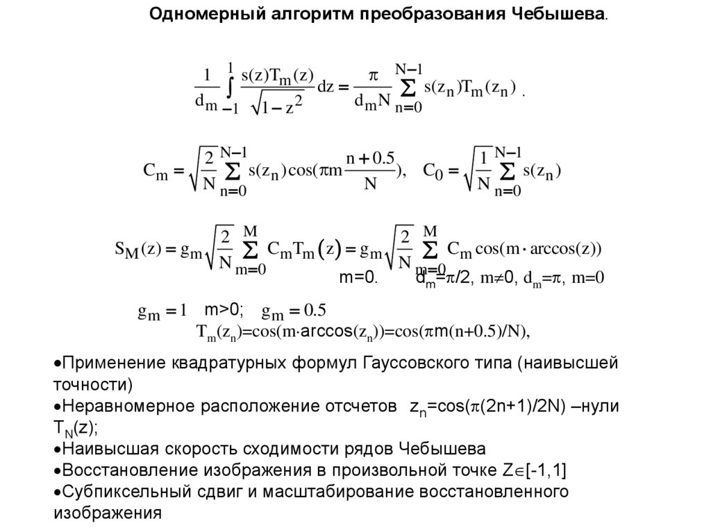 Одномерный алгоритм преобразования Чебышева.1 1 s(z)Tm (z)