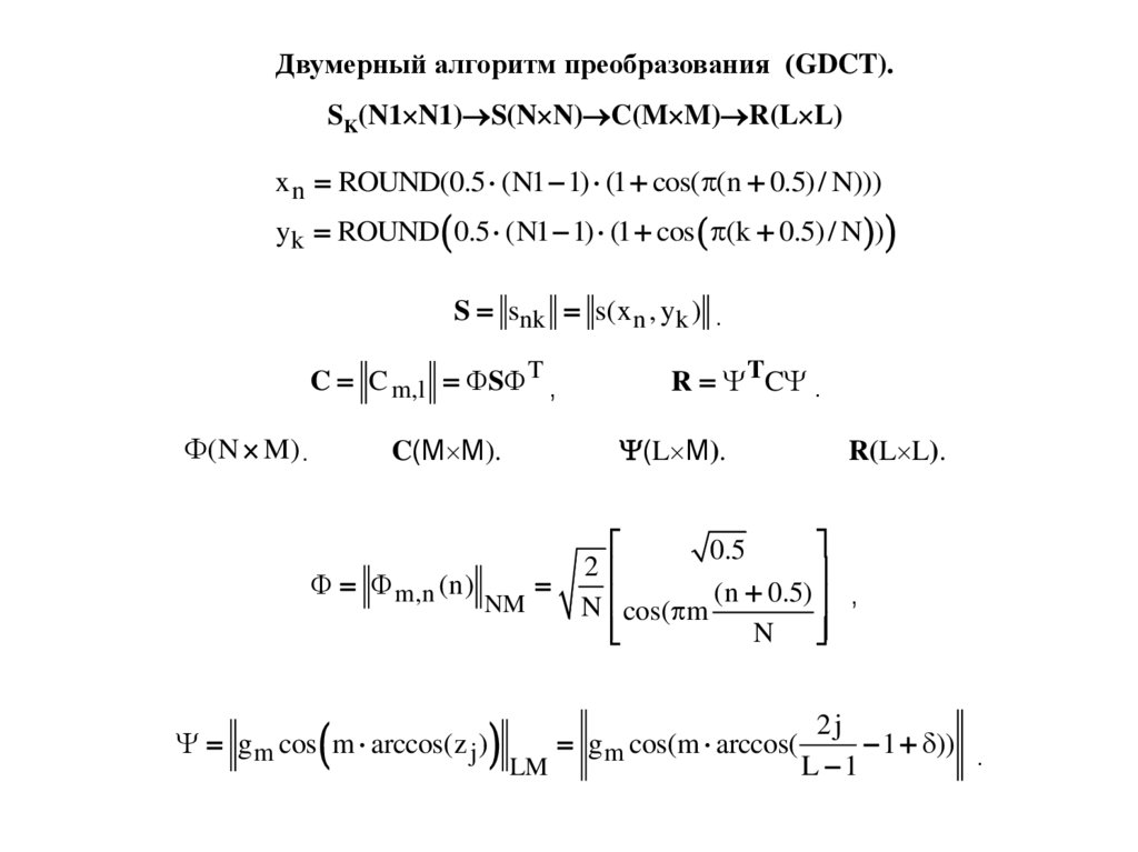 Двумерный алгоритм преобразования (GDCT).SK(N1 N1) S(N N) C(M M) R(L L)