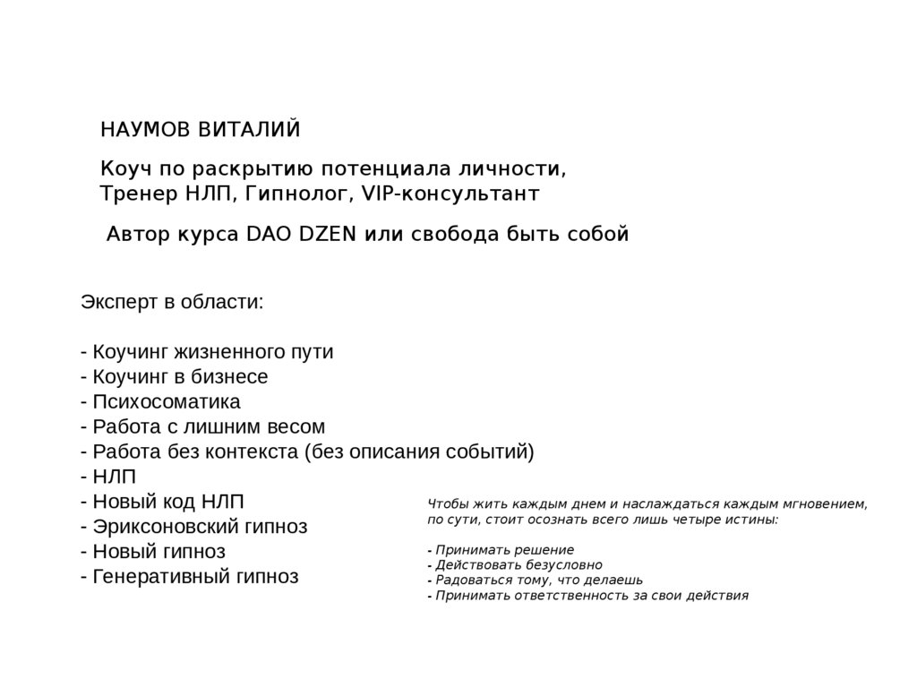 НАУМОВ ВИТАЛИЙКоуч по раскрытию потенциала личности,