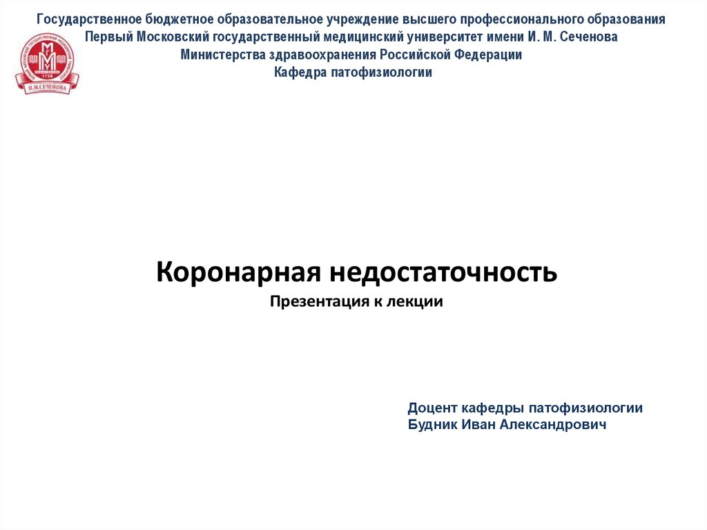 Государственное бюджетное образовательное учреждение высшего профессионального образованияПервый Московский государственный медицинский университет имени И. М. Сеченова
