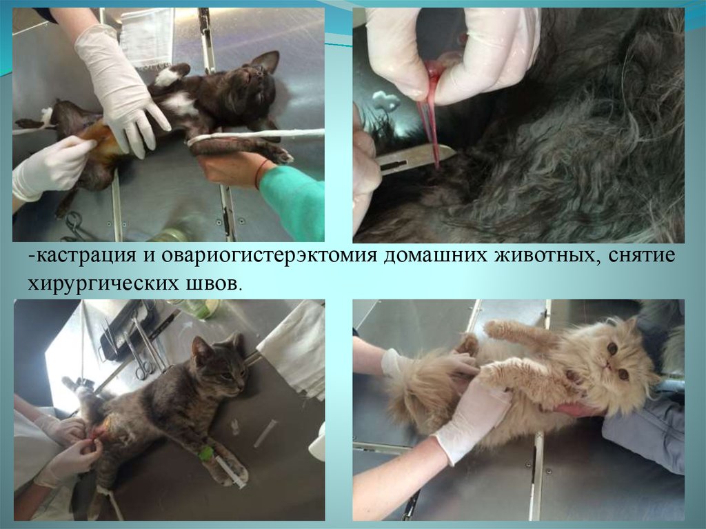 -кастрация и овариогистерэктомия домашних животных, снятиехирургических швов.