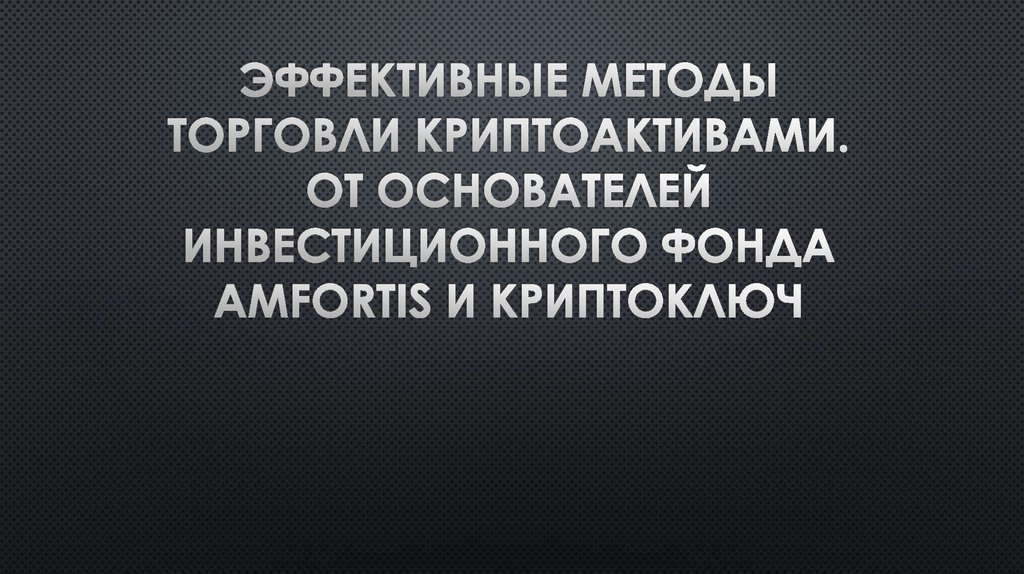 1. Эффективные методы торговли криптоактивами. От основателей инвестиционного фонда AMFortis и криптоключ