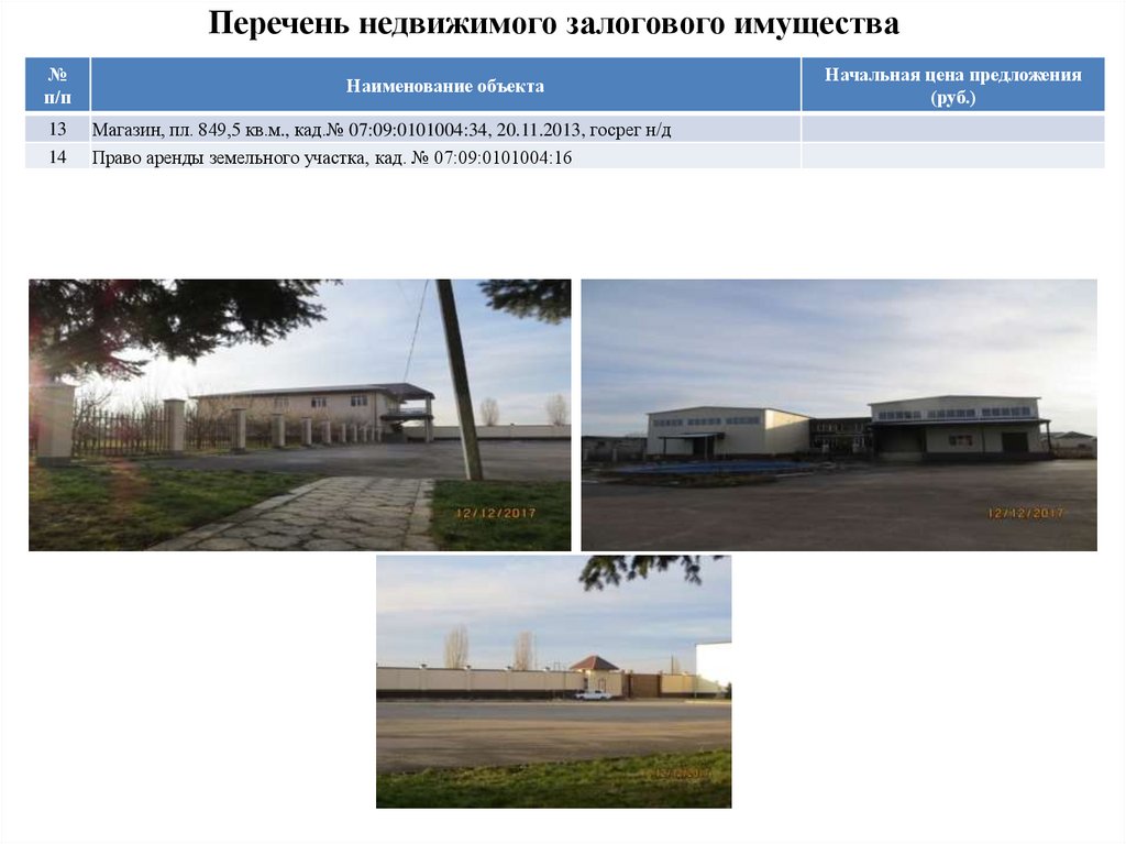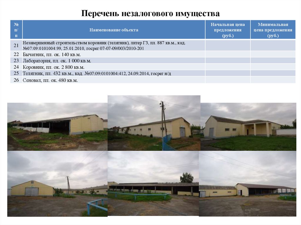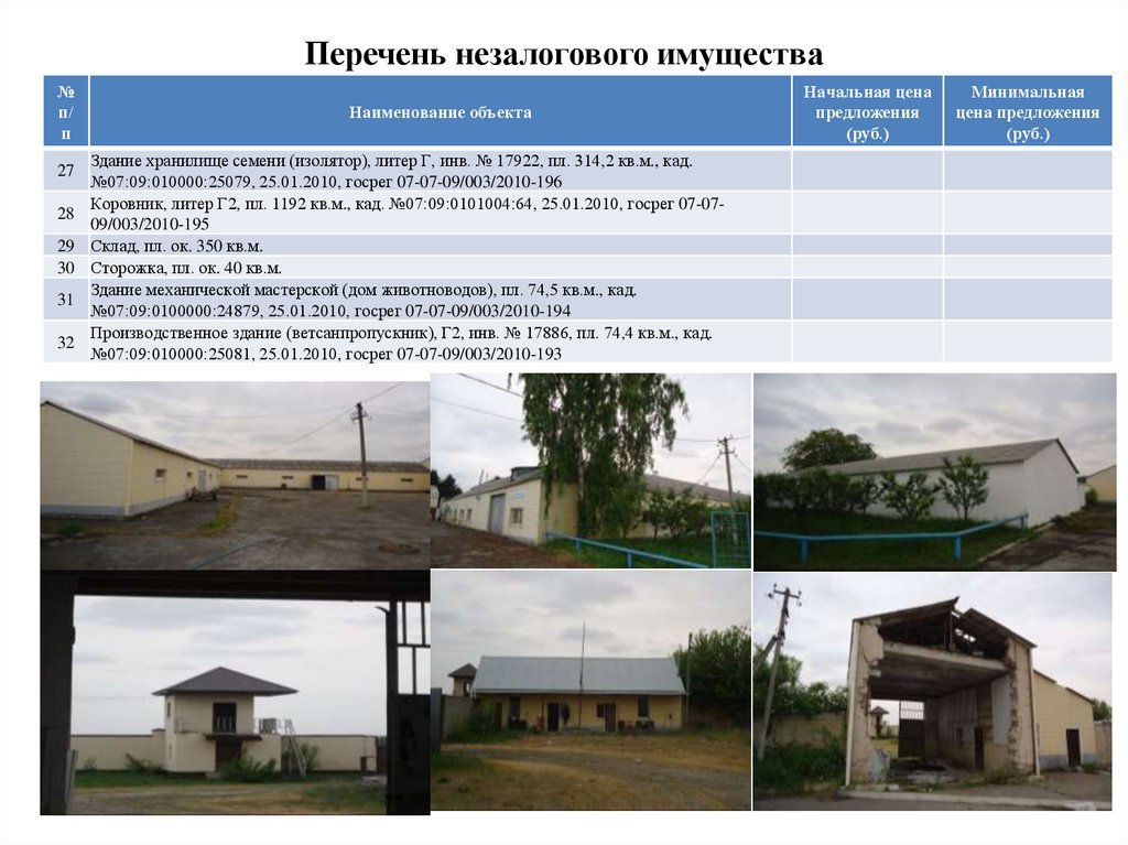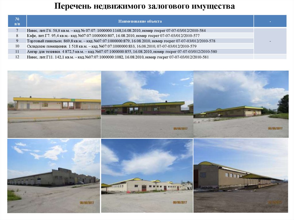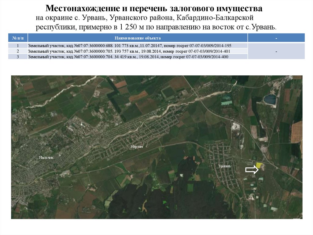 Местонахождение и перечень залогового имуществана окраине с. Урвань, Урванского района, Кабардино-Балкарской