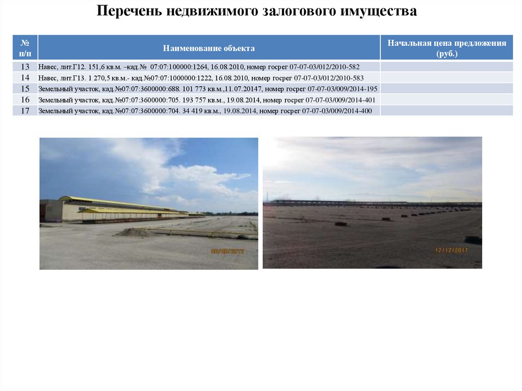 Навес, лит.Г12. 151,6 кв.м. –кад.№ 07:07:100000:1264, 16.08.2010, номер госрег 07-07-03/012/2010-582
