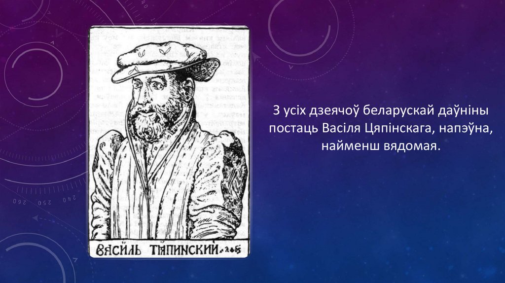 1. Васіль Цяпінскі  беларускі гуманіст, асветнік, пісьменнік i кнігавыдавец, перакладчык.