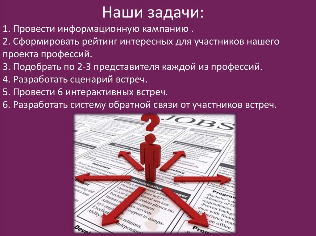 Наши задачи:1. Провести информационную кампанию .