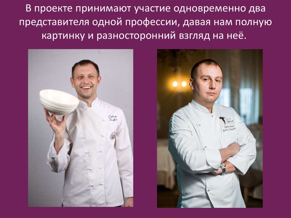 В проекте принимают участие одновременно двапредставителя одной профессии, давая нам полную