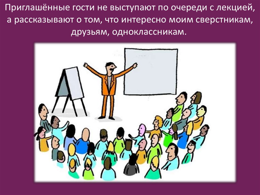 Приглашённые гости не выступают по очереди с лекцией,а рассказывают о том, что интересно моим сверстникам,