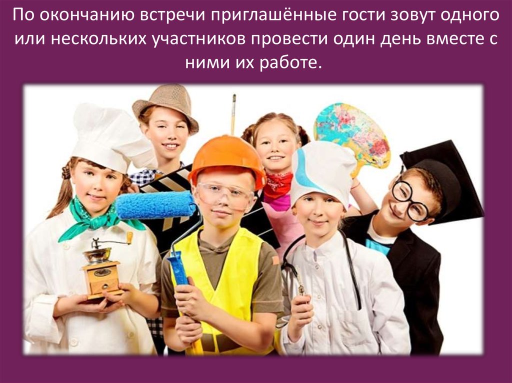 По окончанию встречи приглашённые гости зовут одногоили нескольких участников провести один день вместе с