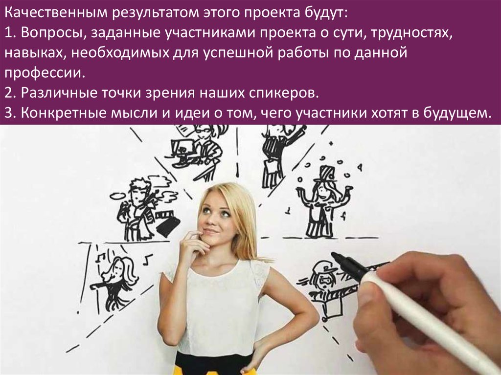 Качественным результатом этого проекта будут:1. Вопросы, заданные участниками проекта о сути, трудностях,