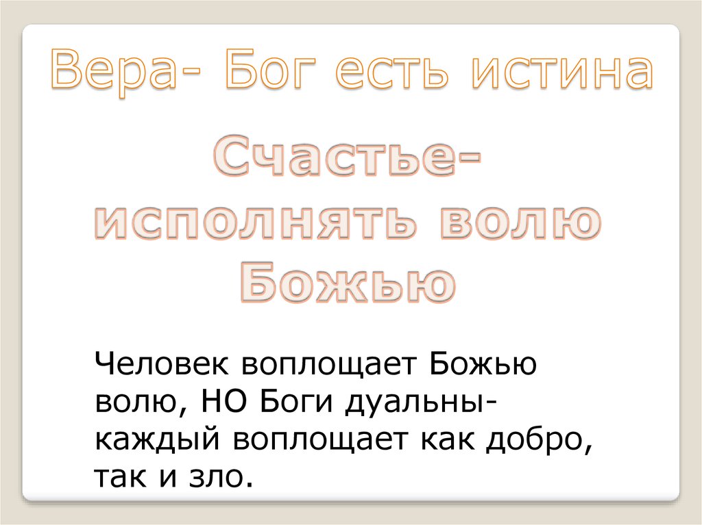 Человек воплощает Божьюволю, НО Боги дуальныкаждый воплощает как добро,
