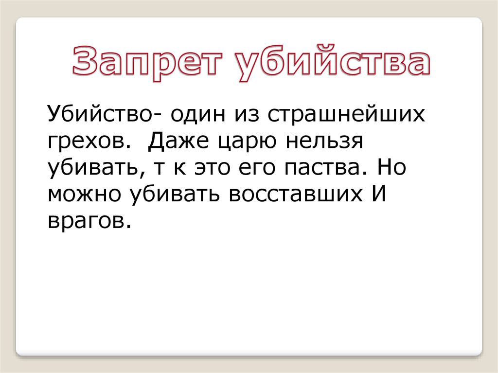 Убийство- один из страшнейшихгрехов. Даже царю нельзя