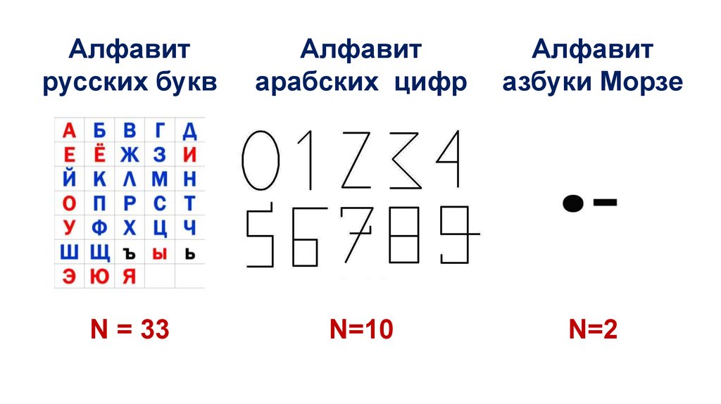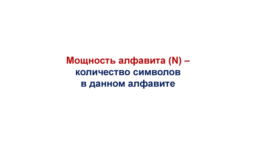 Мощность алфавита (N) –количество символов