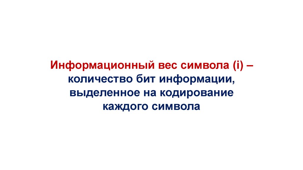 Информационный вес символа (i) –количество бит информации,
