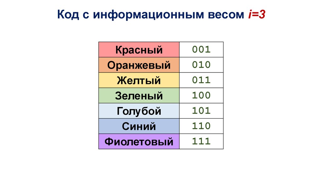 Код с информационным весом i=3Красный