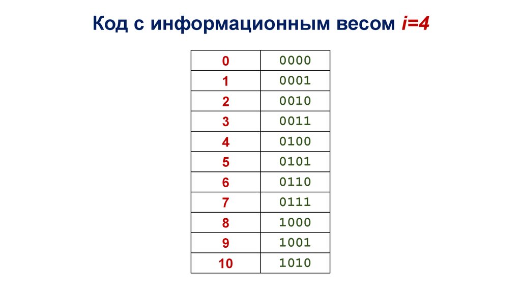 Код с информационным весом i=1-