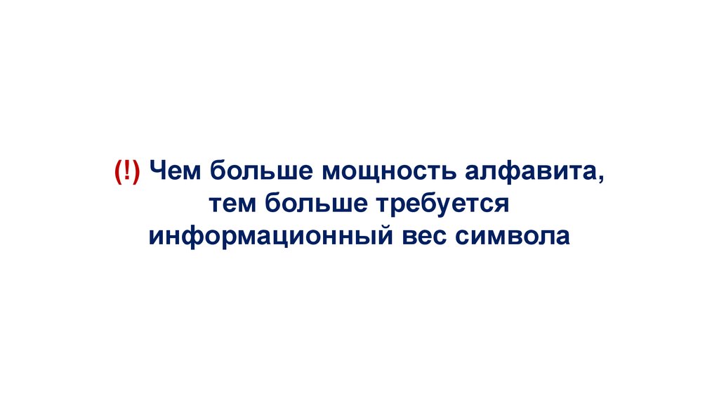 (!) Чем больше мощность алфавита,тем больше требуется