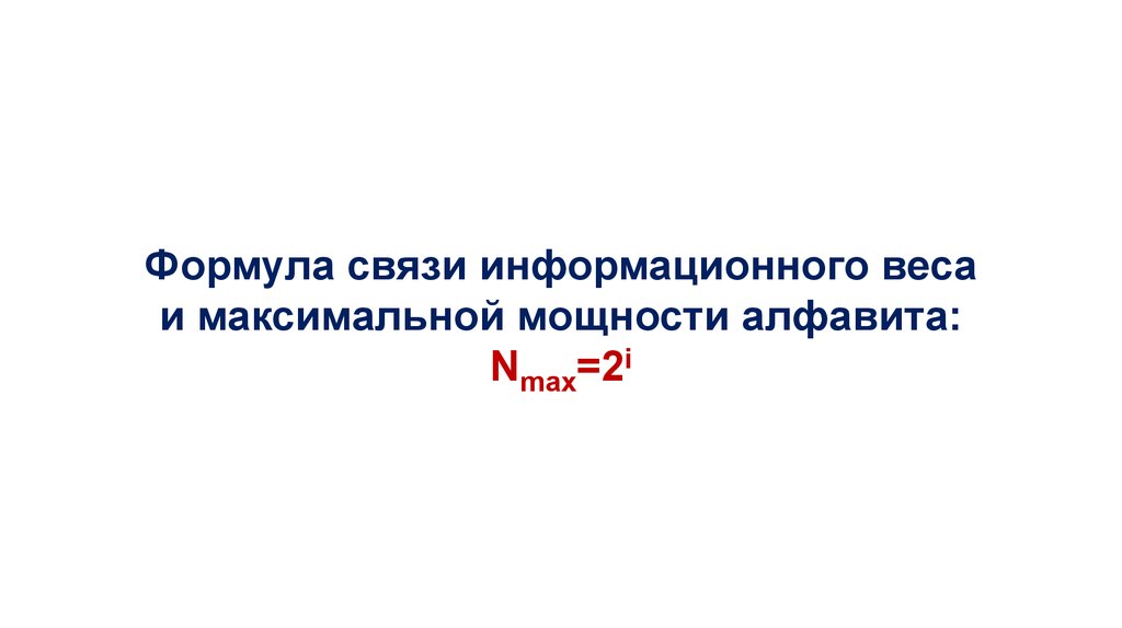 Формула связи информационного весаи максимальной мощности алфавита: