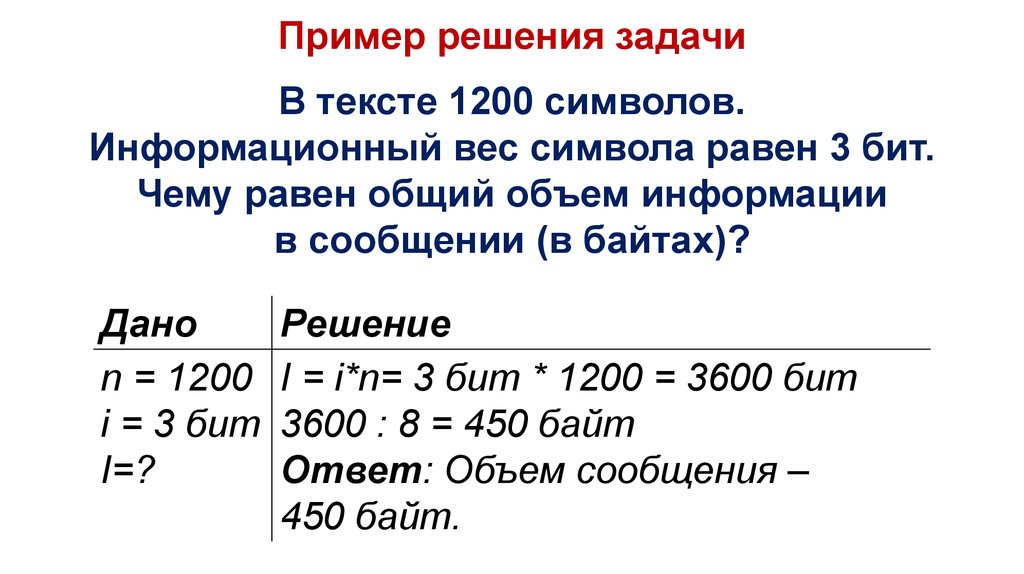 Пример решения задачиКаким должен быть информационный вес