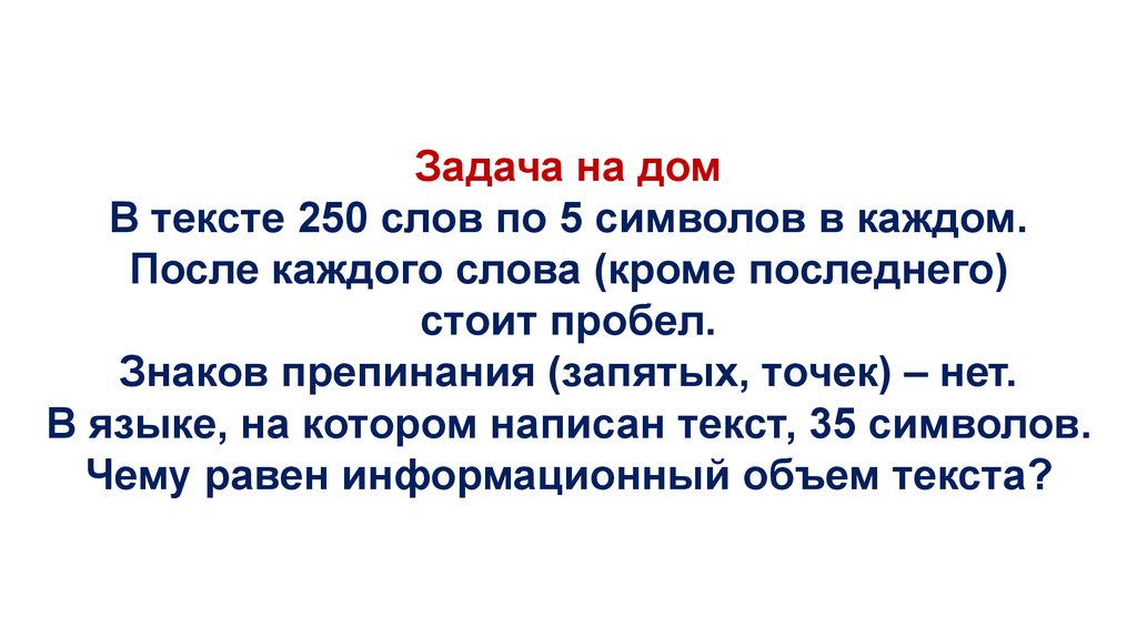 Задача на домВ тексте 250 слов по 5 символов в каждом.