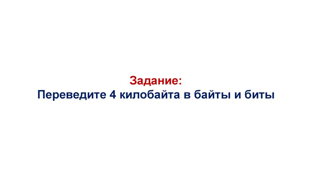 Задание:Переведите 4 килобайта в байты и биты