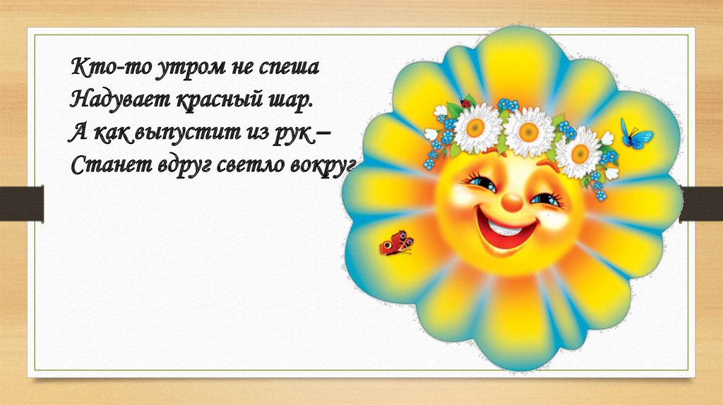 Кто-то утром не спешаНадувает красный шар.