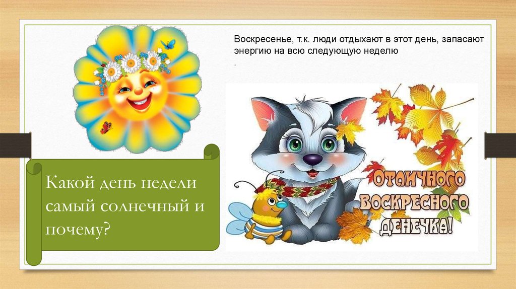 Воскресенье, т.к. люди отдыхают в этот день, запасаютэнергию на всю следующую неделю