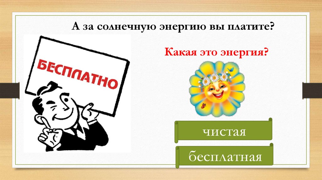 А за солнечную энергию вы платите?Какая это энергия?