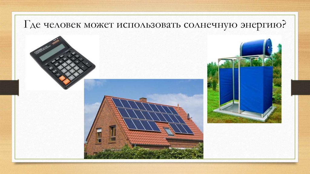 Где человек может использовать солнечную энергию?9.