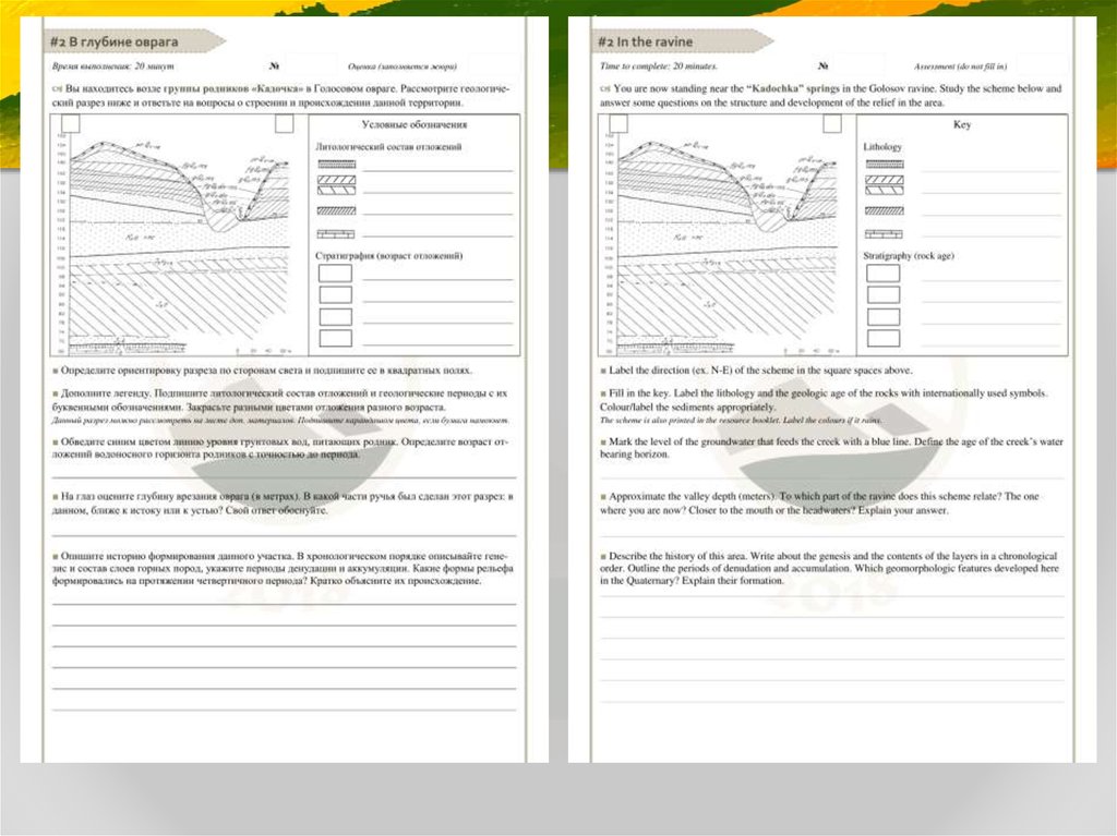 • Всего 7 баллов• Глубина врезания оврага на местности ~15 м 1