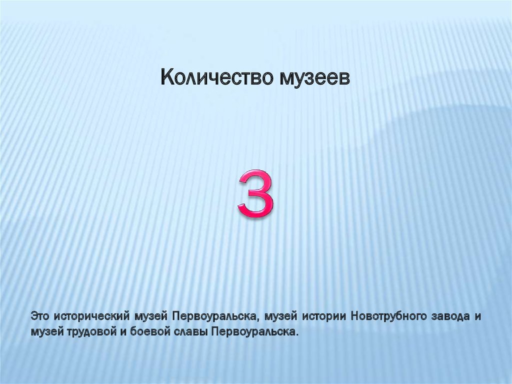 Количество музеевЭто исторический музей Первоуральска, музей истории Новотрубного завода и