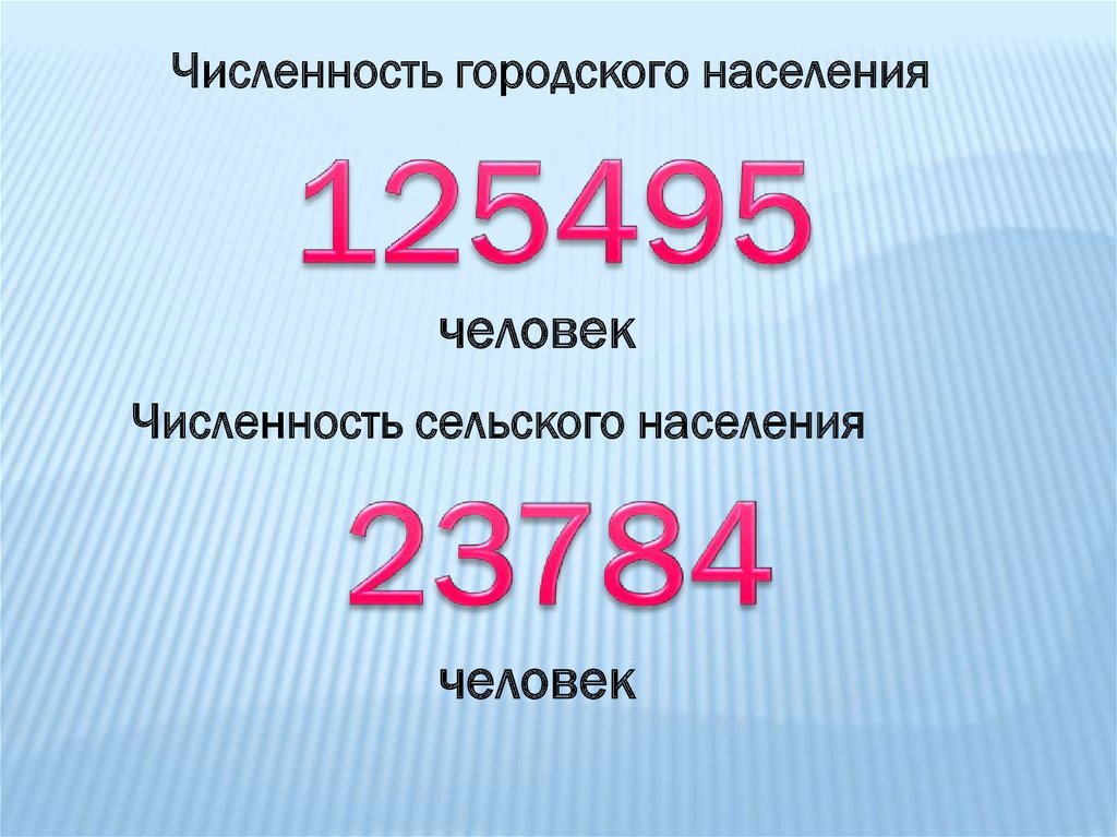 2) 125495 - 23784 = 101711 (ч.) – больше в городе, чем в селах.