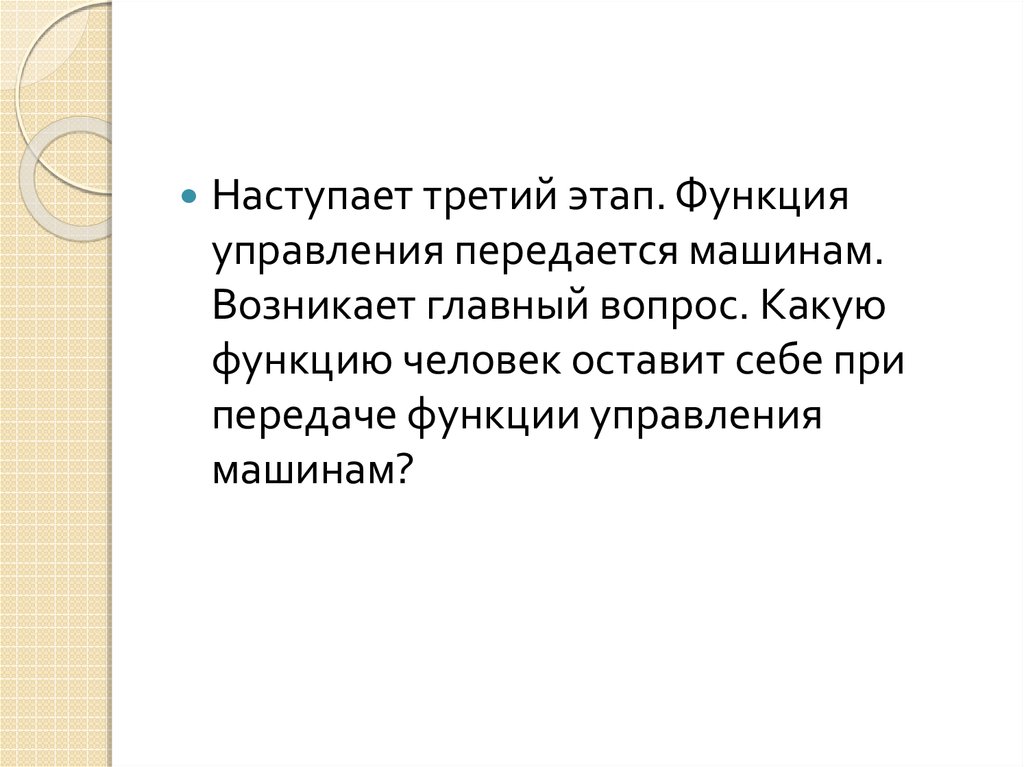 Передавая физическую функциюсредствам и машинам, человек всегда