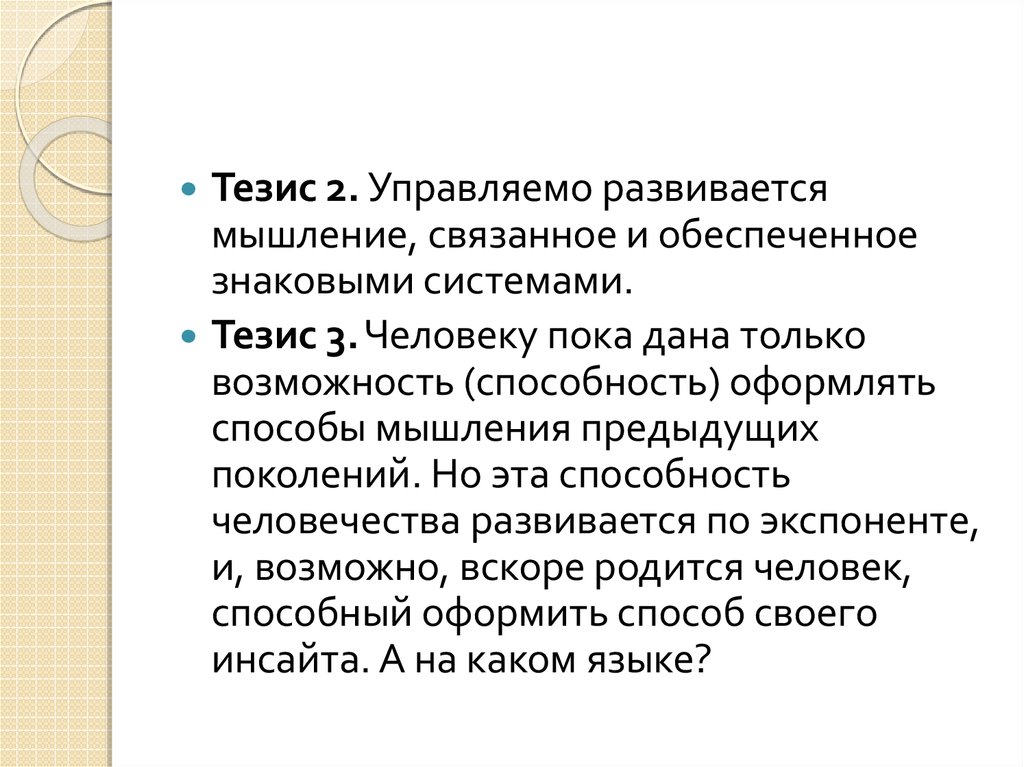 Тезис 2. Управляемо развиваетсямышление, связанное и обеспеченное