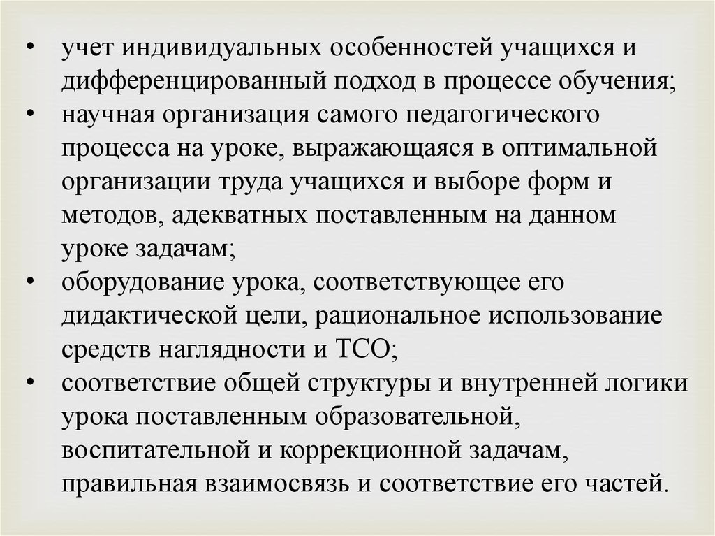 • учет индивидуальных особенностей учащихся идифференцированный подход в процессе обучения;