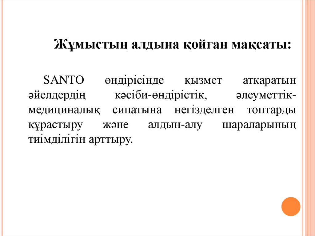 Мәселенің өзектілігі:SANTO өндірісінде еңбек етушілердің 90 пайызын әйелдер