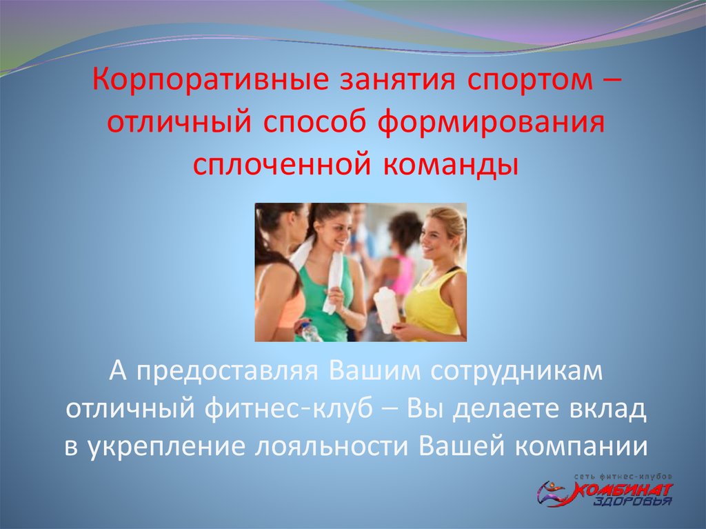 3. Предлагаем Вам рассмотреть предложение о корпоративном сотрудничестве – оказание Вашей компании фитнес-услуг на базе сети