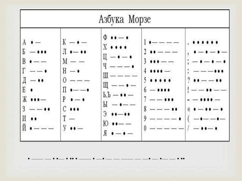 можно отметить азбуку Морзе: для «прочтения» сообщения нужно сначала