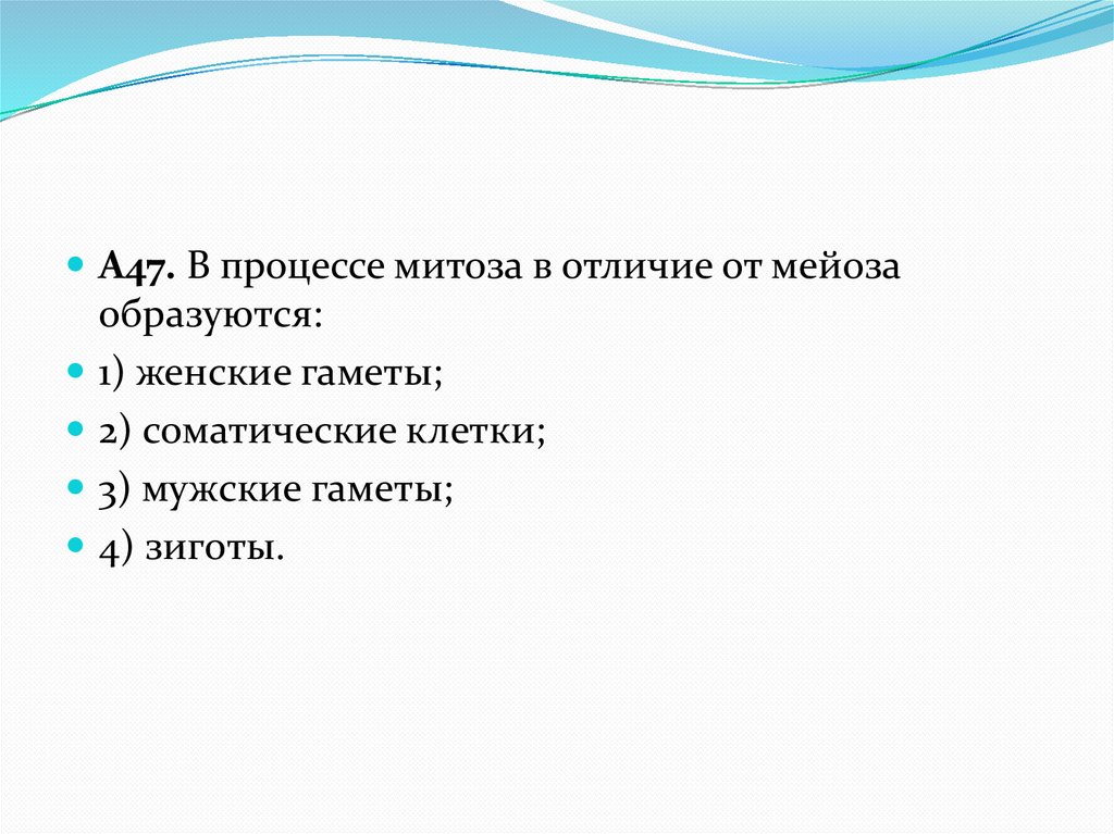 А47. В процессе митоза в отличие от мейозаобразуются: