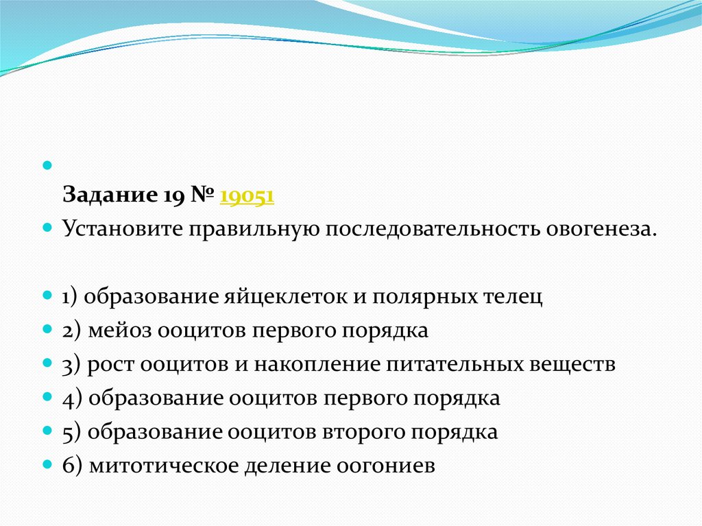 Задание 19 № 19051Установите правильную последовательность овогенеза.