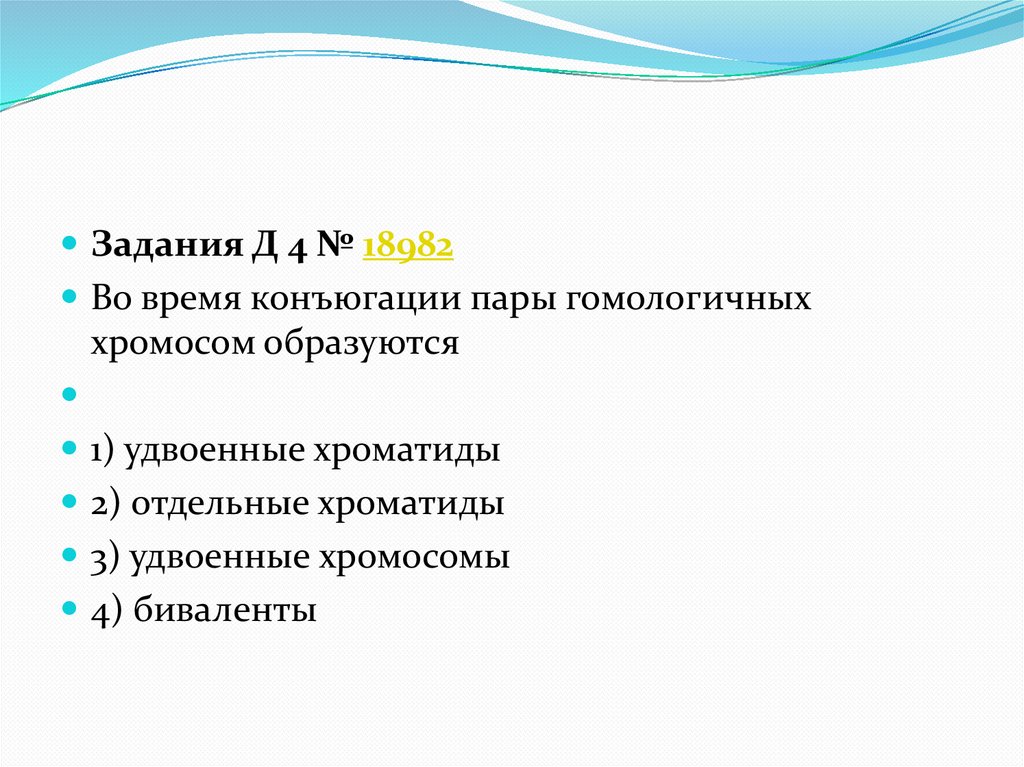 Задания Д 4 № 18982Во время конъюгации пары гомологичных