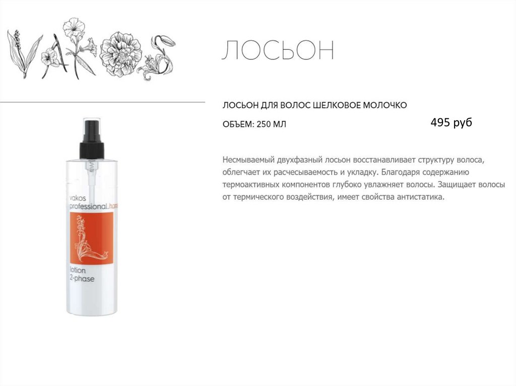 Линия Vakos Professional. Уход за волосами