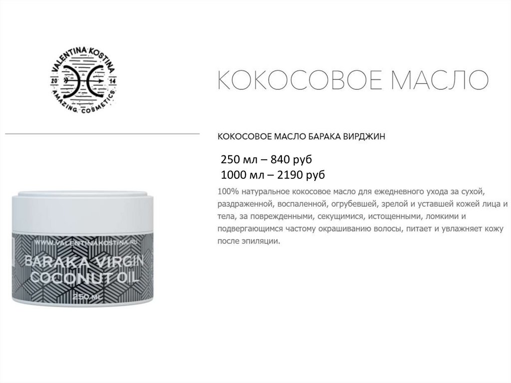 250 мл – 840 руб1000 мл – 2190 руб