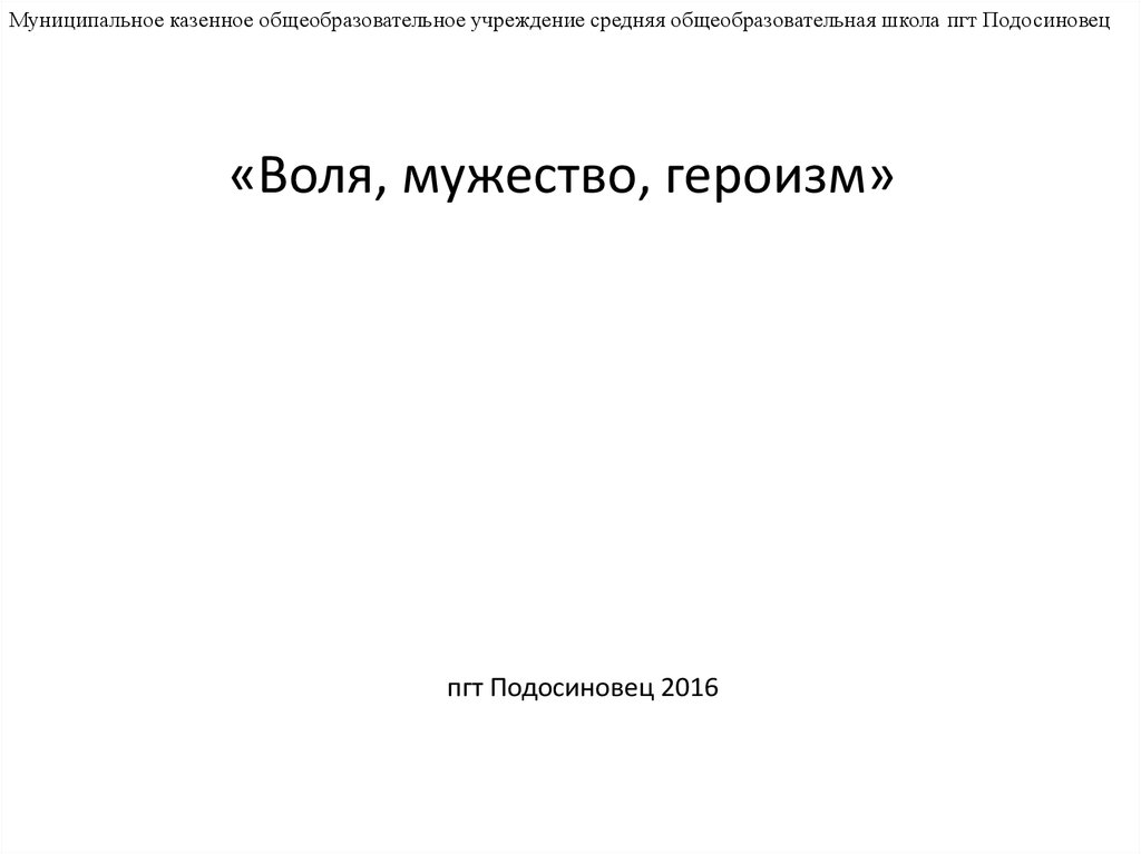 Муниципальное казенное общеобразовательное учреждение средняя общеобразовательная школа пгт Подосиновец«Воля, мужество, героизм»