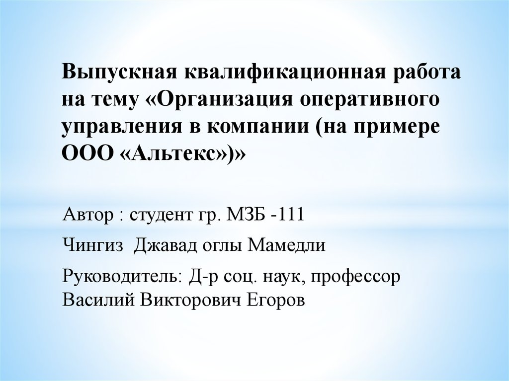 Организация оперативного управления в компании (на примере ООО «Альтекс»)